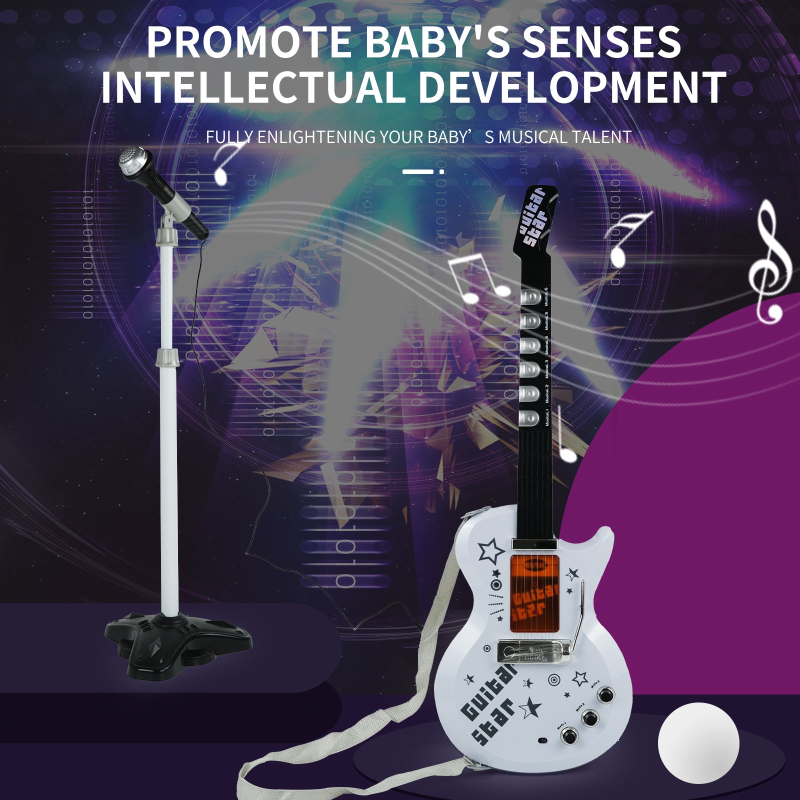 AOQIMITENJOY Musical Instrument Electronic Guitar Set Toys with Vertical Microphone LED Lighting Karaoke Birthday Gifts for Boys and Girls 3 Year Old+ HK-9010C