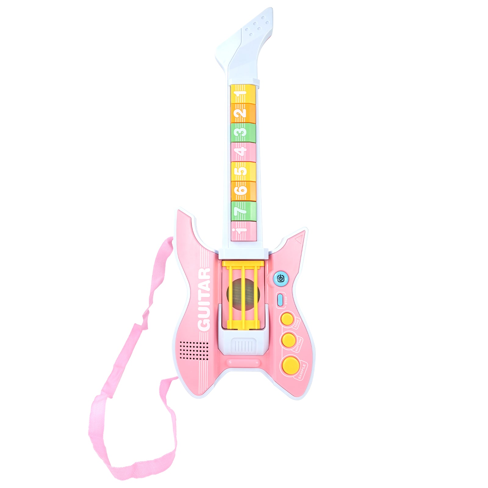 - 🎵 Multifunctional Music Toy: The guitar features 8 fretboard keys, 3 tones, and 8 rhythms, allowing children to experiment with different types of music and enjoy a rich, colorful playing experience.