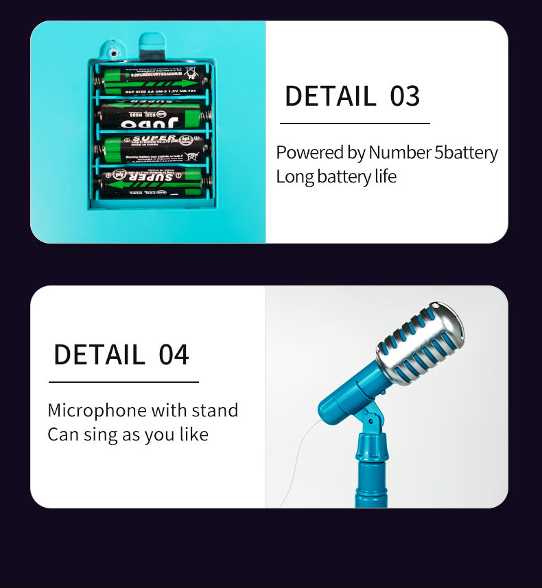 Adjustable Stand: The microphone comes with an adjustable stand, allowing kids to customize the height to their preference for comfortable singing sessions.