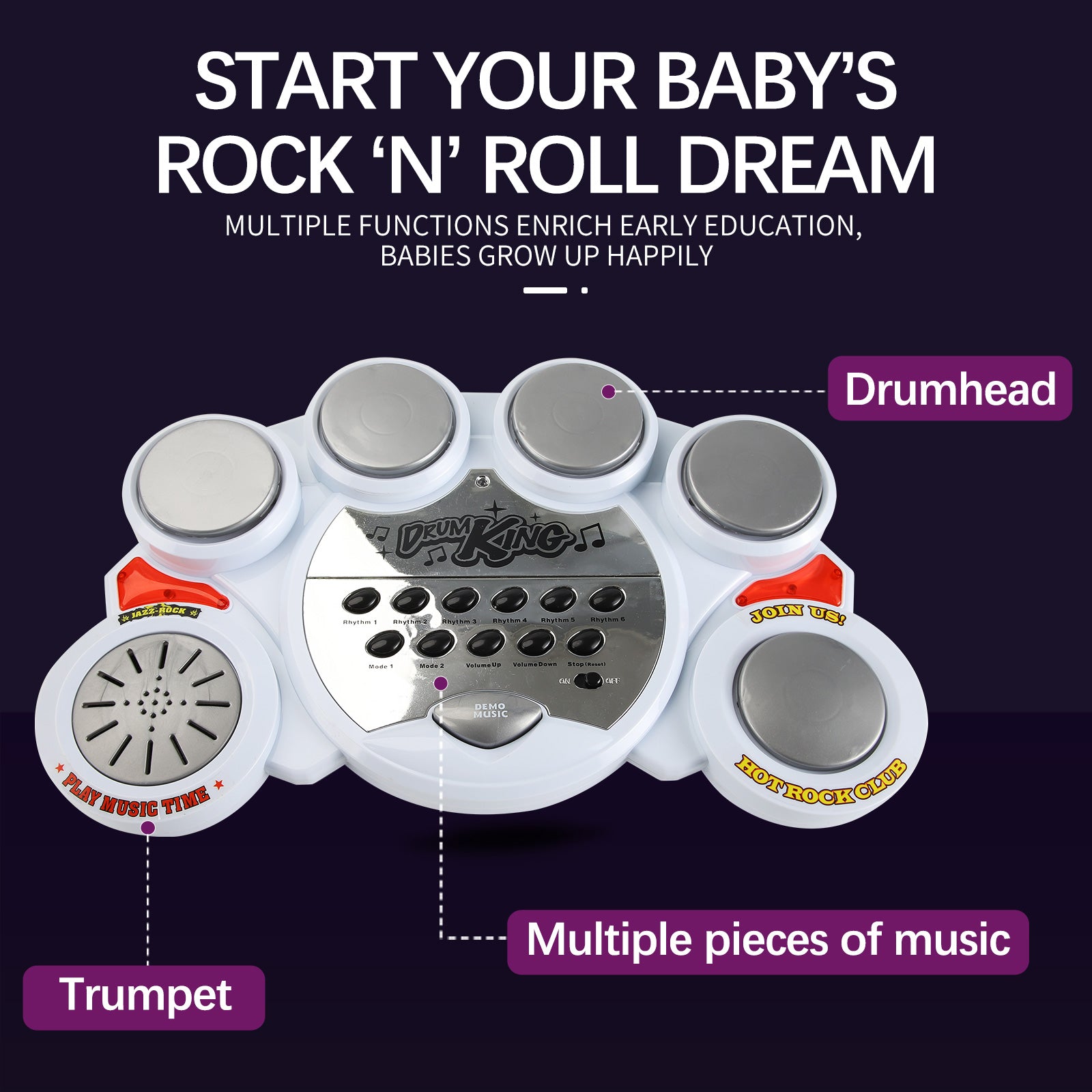 Versatile Drumming Fun: This dynamic drum set toy lets your child unleash their inner drummer! With various drums and cymbals, they can create rhythms and beats just like a real drummer.